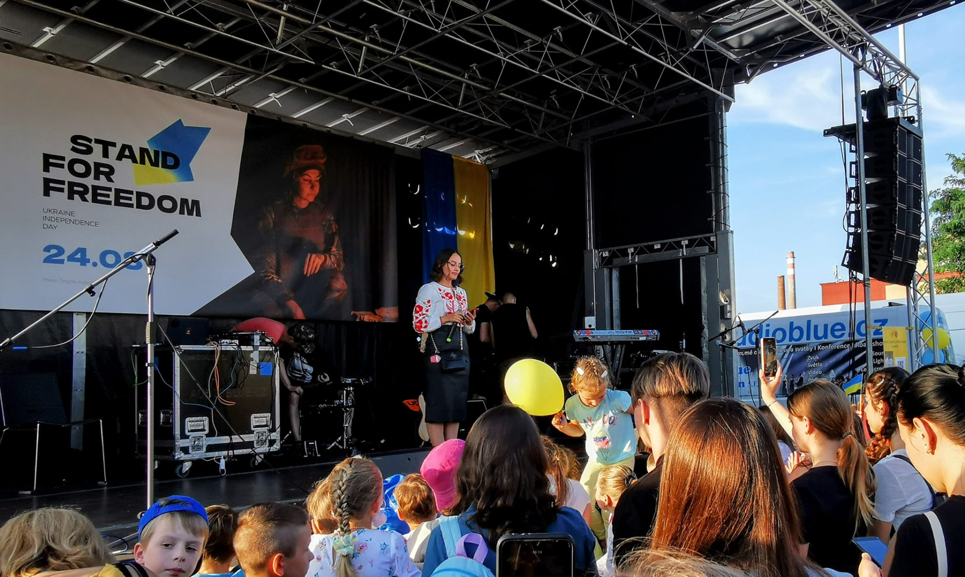 V Den nezávislosti Ukrajiny se 24.8.22 v Praze uskutečnilo několik akcí na Václavském a Staroměstském náměstí, nejpočetnější pak patrně na Výstavišti v Praze 7. Fotoreportáž Z.Žalského zachycuje atmosféru vystoupení dětských skupin i dospěláků (Džerelo, MarOlja, Šče mytj, OELj, M.Bolekhovsjka, D.Kuriščák aj.). Kromě vystoupení primátora hl.m.Prahy a zástupců velvyslanectví na scéně promluvila řada dobrovolníků a zástupců ukrajinské menšiny v ČR. Večer končil hiphopovým stylem skupiny TNMK. Vše v duchu podpory Ukrajině.