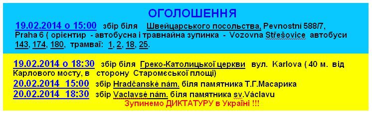 20.02.2014 15:00 збір Hradčanské nám. біля памятника Т.Г.Масарика