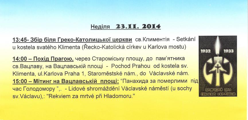 День пам'яті жертв голодомору в Україні / День свободи і гідності ... 23.11. 2014 в Празі