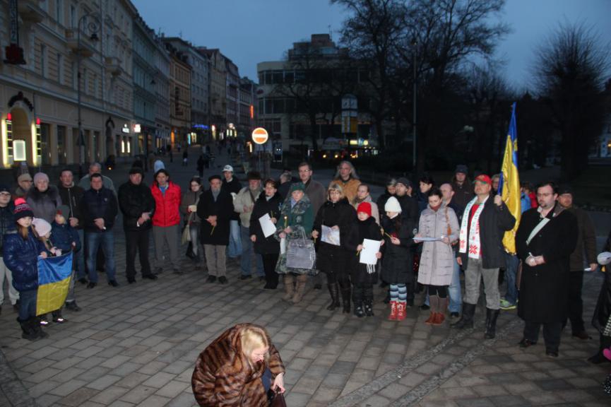 Розпочавши з хвилини мовчання у пам'ять померлих на Майдані у своїй промові голова Союзу Українці Богемії В.Роговий подякув чеській спільноті про всебічну підтримку боротьби українського народу.