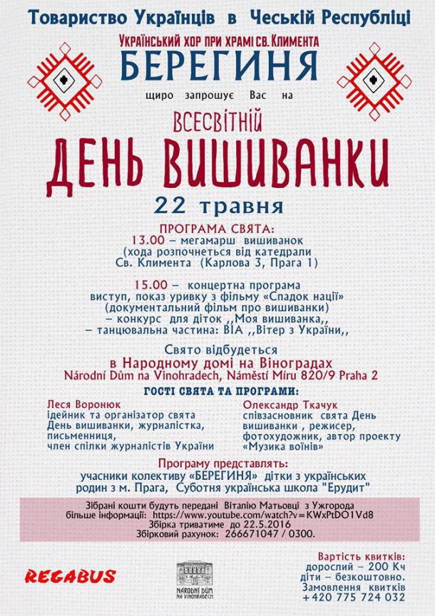 Kолектив БЕРЕГИНЯ готує ,,Всесвітній день вишиванки ,, ... 22 травня 2016 року о 13.00 год.