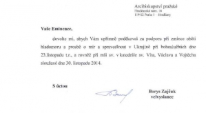 Подяки главам Католицької, Греко-католицької та Православної церков ЧР