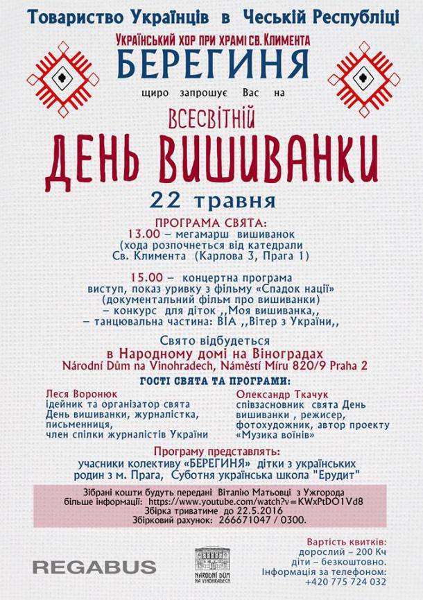 День вишиванки відзначили і в Чехії. У столиці країни Празі до пам’ятника українському поетові Тарасу Шевченкові прийшло близько 20 українців у вишиванках.