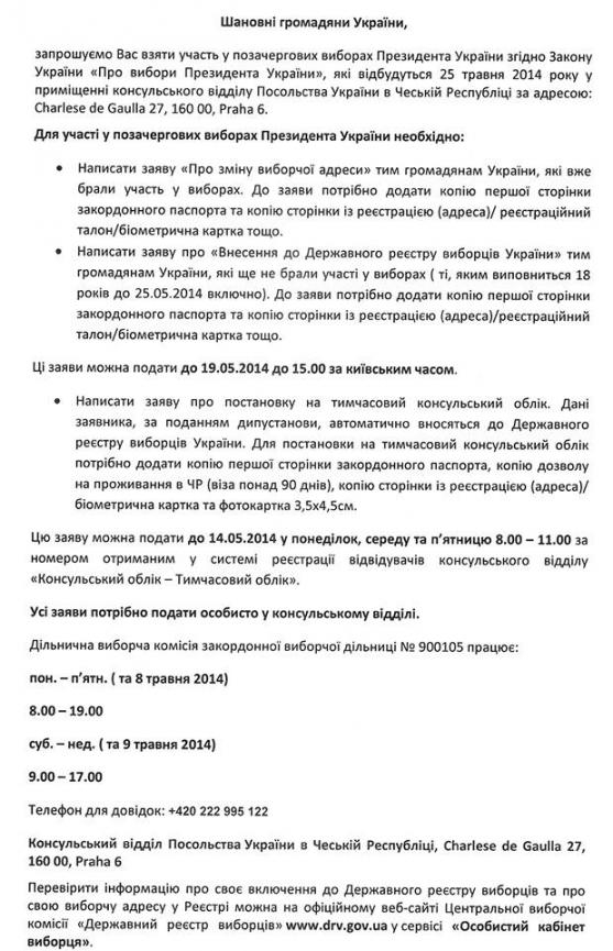 Вибори президента УКРАЇНИ 25.5.2014 ОФІЙНА ІНФОРМАЦІЯ ПРАГА - ДВК № 900105