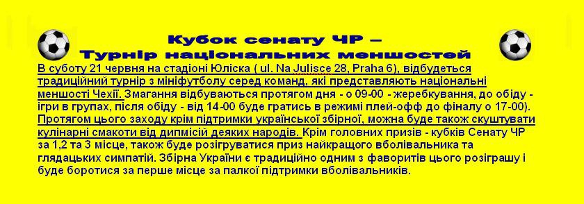 В суботу 21 червня на стадіоні Юліска відбудеться традиційний турнір з мініфутболу серед команд, які представляють національні меншості Чехії.
