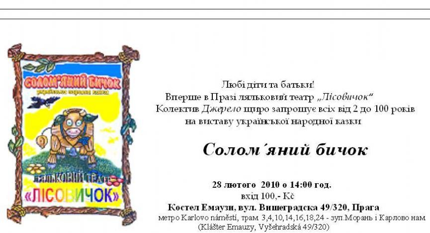 Вперше в Празi ляльковий театр „Лiсовичок“ - 28.2.2010 о 14°° год.