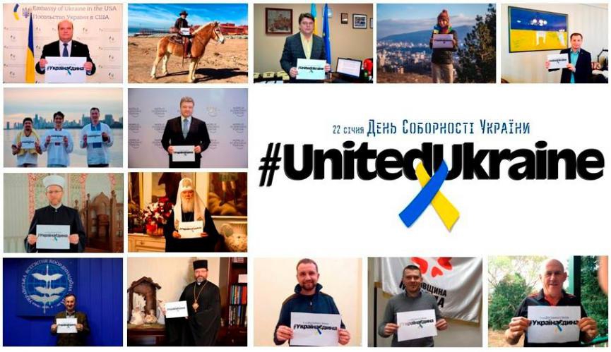 Підбито підсумки міжнародного флеш-мобу «United Ukraine», що проходив 11-22 січня 2016 року за підтримки України в різних куточках світу. Суть флеш-мобу полягала в тому, що кожен бажаючий міг сфотографуватися з постером на підтримку єдності України та викласти фото в мережу з хеш-тегом #UnitedUkraine та #УкраїнаЄдина. Флеш-моб у мережі набрав велику популярність і залучив набагато більшу кількість учасників i країн учасниць, ніж планувалось. Участь взяло понад 15 000 учасників, із 68 країн світу, що розташовані на всіх континентах, хоча реальна цифра учасників є більшою, враховуючи кількість учасників які не зафіксовані організаторaми. В Україні долучились учасники зі 117 населених пунктів в усіх областях.