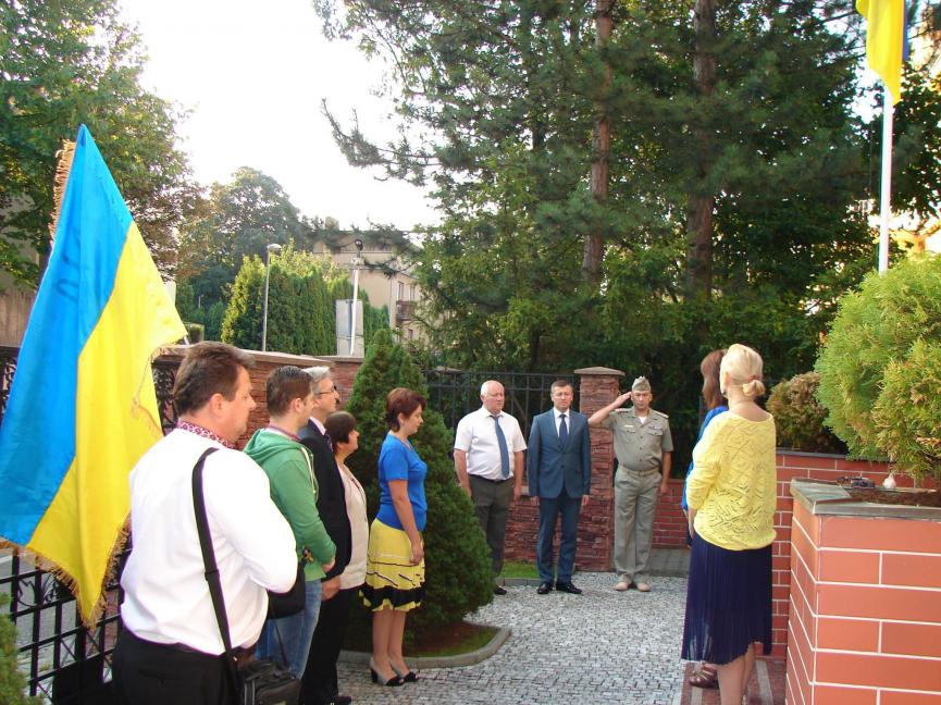 Перед будинком Посольства України в Чеській Республіці урочисто піднято Державний прапор України. У церемонії підняття взяли участь співробітники дипустанови та представники української громади ЧР.