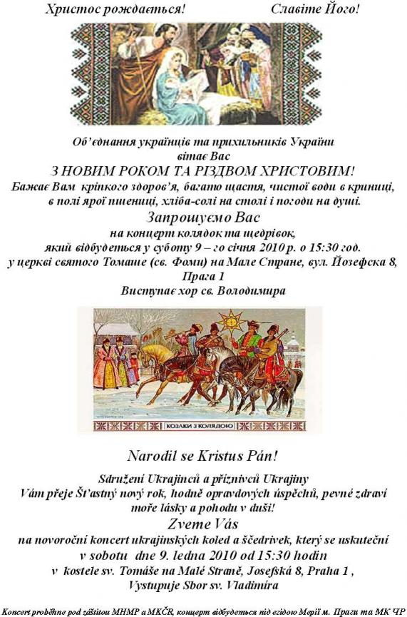 концерт вiдбудеться пiд егiдою Мерiї м. Праги та МК ЧР