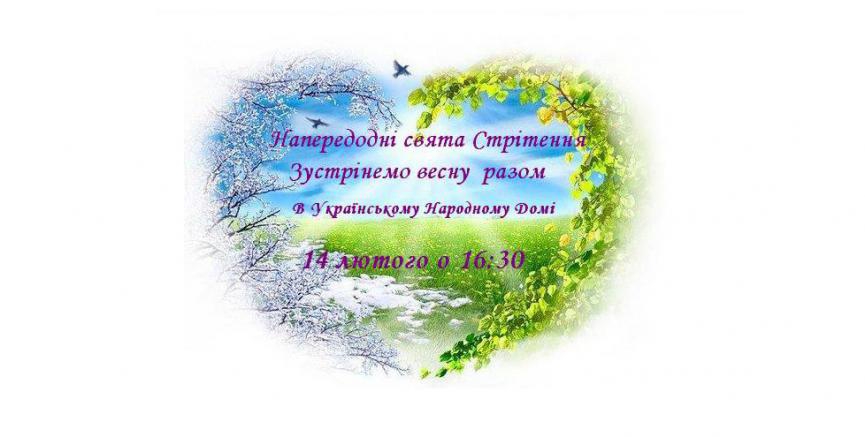 14 лютого, о 16:30 год. запрошуємо на народне свято «Стрітення» в Український Народний Дім, щоб разом провести зиму і зустріти весну.