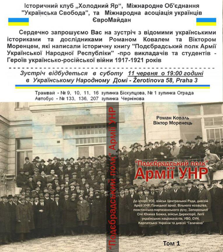 Сердечно запрошуємо Вас на зустріч з відомими українськими істориками та дослідниками Романом Ковалем та Віктором Моренцем, які написали історичну книгу "Подєбрадський полк Армії Української Народної Республіки" - про викладачів та студентів - Героїв українсько-російської війни 1917-1921 років
