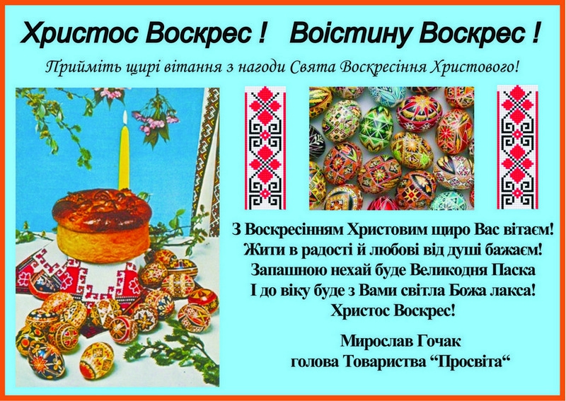 Великодне вітання Українського Товариства "Просвіта" в Сербії.